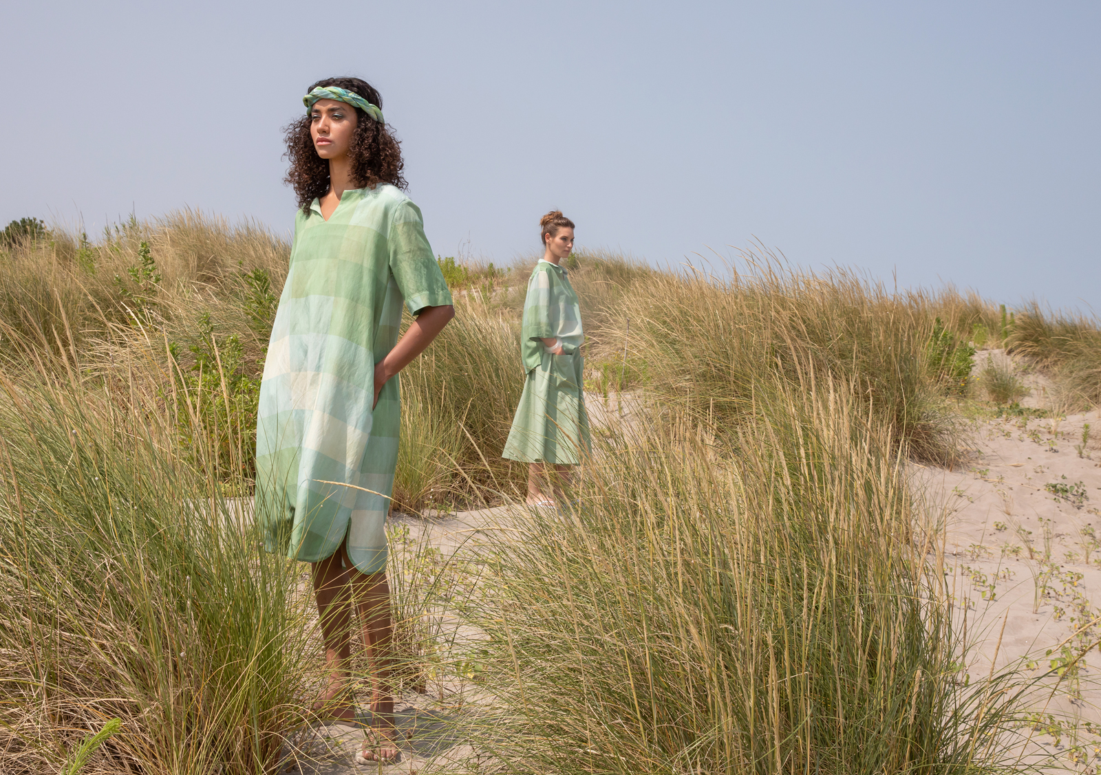 Forte dell’eccellenza dei filati e dell’utilizzo di tessuti naturali, la fantasia è libera di spaziare nelle forme e negli accostamenti insoliti ma raffinati, aggiungendo un elemento di modernità alla collezione.